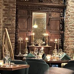 Kebab aur Sharab is a fantastic place! The Paan Shop cocktail was incredibly refreshing and tasted just like Paan in a liquid form. The baby goat kebab was the most tender kebab I've ever had, and the Nawabi Lamb Kebab was packed with flavor and absolutely delicious. I also really enjoyed the Old Delhi Korma, which was perfect for sharing between two people. My colleagues sampled all of the old fashioneds, and they were all excellent. Highly recommend this spot for anyone looking for amazing food and drinks! We loved the decor which was dimly lit but very stylish. There was plenty of seating and space for all sizes of groups.