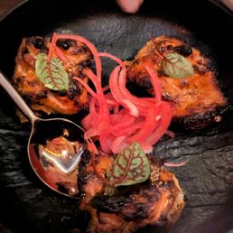 Beautiful interior (especially the bar area)! The lychee lassi was unique and very delicious. The apps were all pretty good, and the lamb chops were really good. the kebabs were good but didn't stand out. The chicken tikka was also a bit dry. The main courses definitely stole the show. The butter chicken was so good, and we got the amazing bone marrow rice too. The daal was some of the best I've had. Bread on the side was great too. Service was pretty attentive and fast.